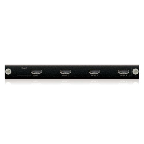 The PRO-OUT4H output board offers 4x independent HDMI outputs for connection to HDMI display devices / AVR's and features quick release card module fittings allowing simple installation into the Custom Pro Matrix hub.